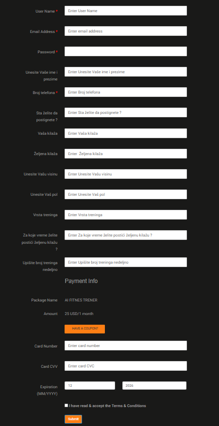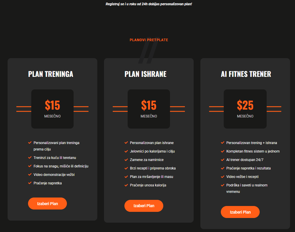 U zavisnosti od vaših ciljeva, možete izabrati plan treninga, plan ishrane ili kompletan AI fitness paket.